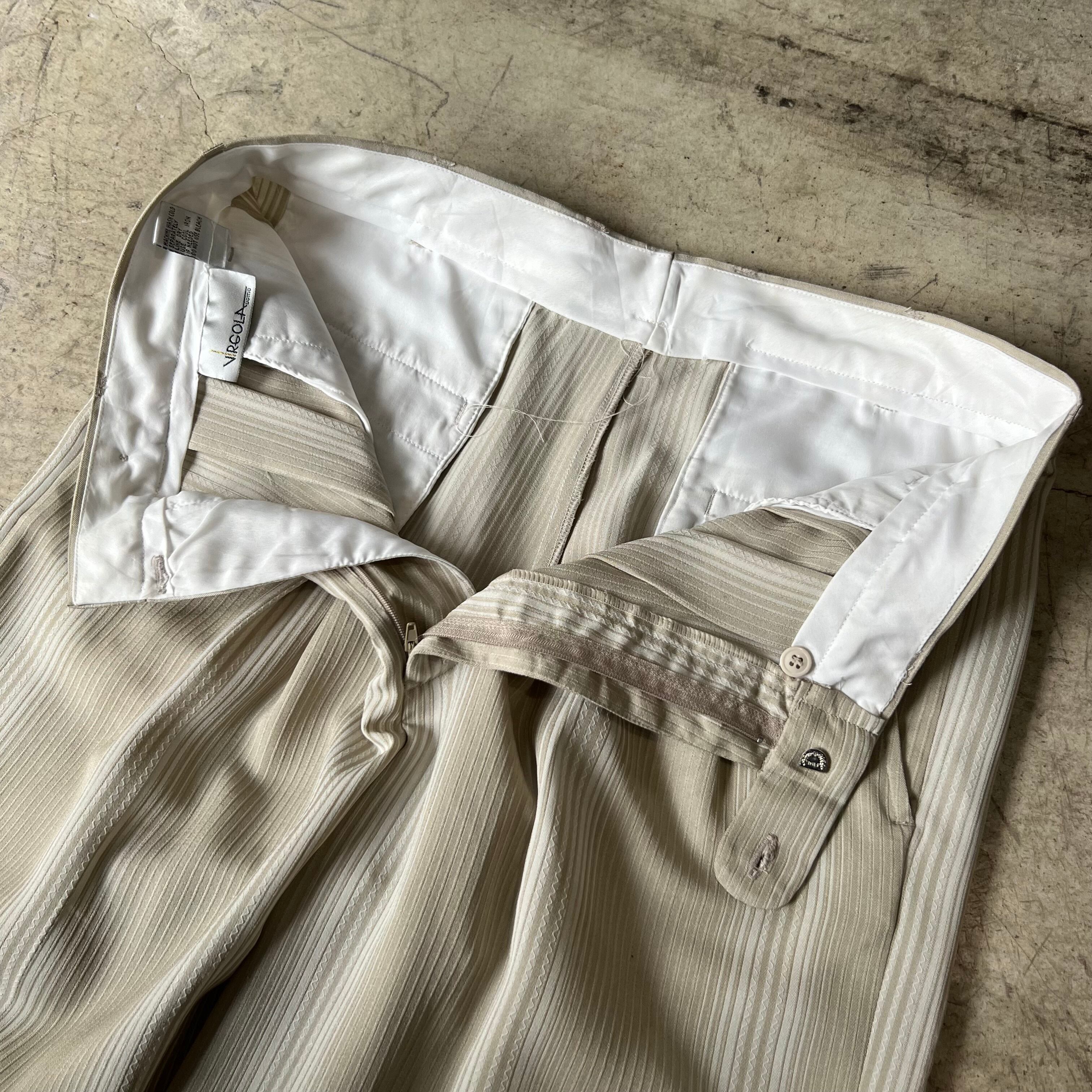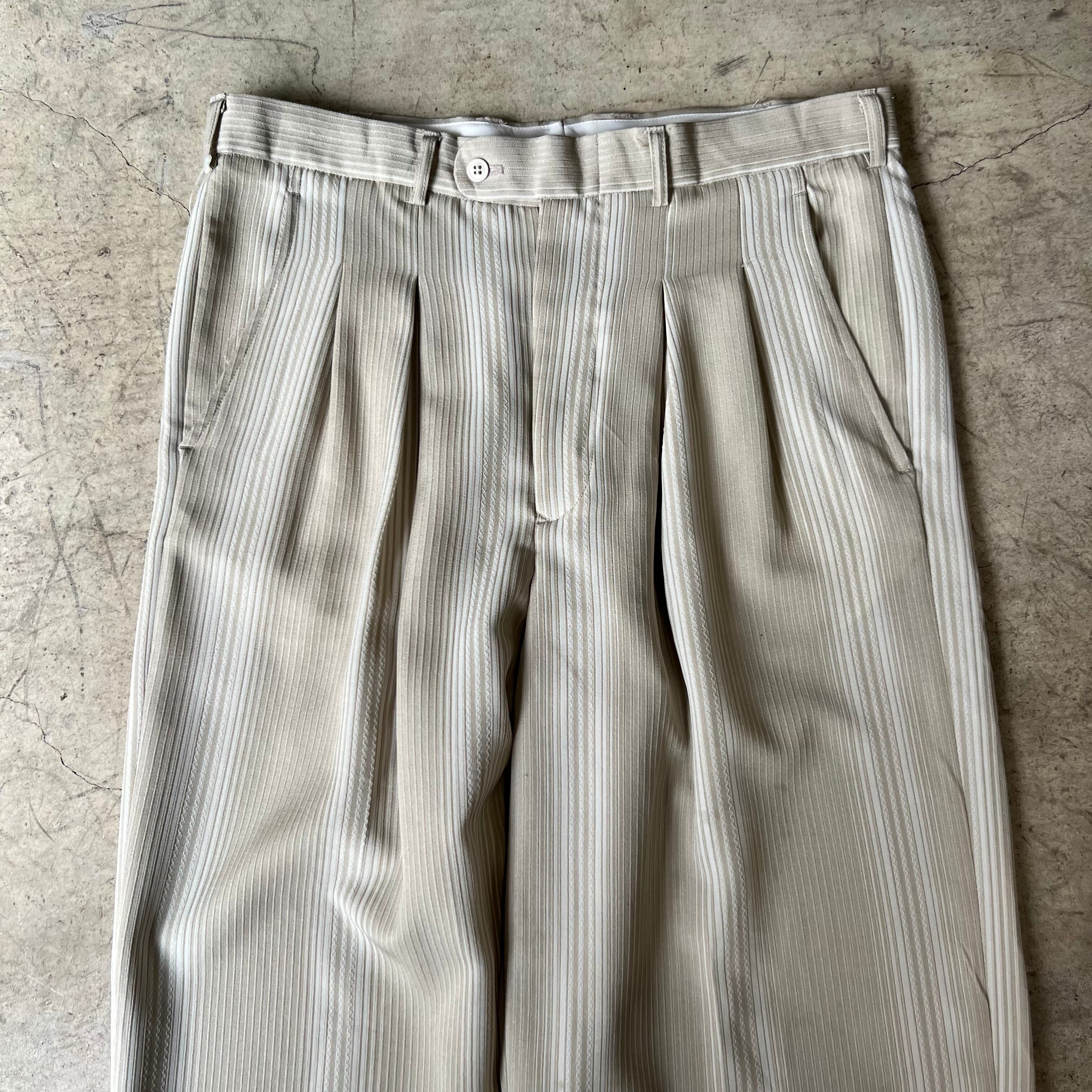 Old VIRGOLA UOMO rayon×polyester stripe wide slacks W32L32