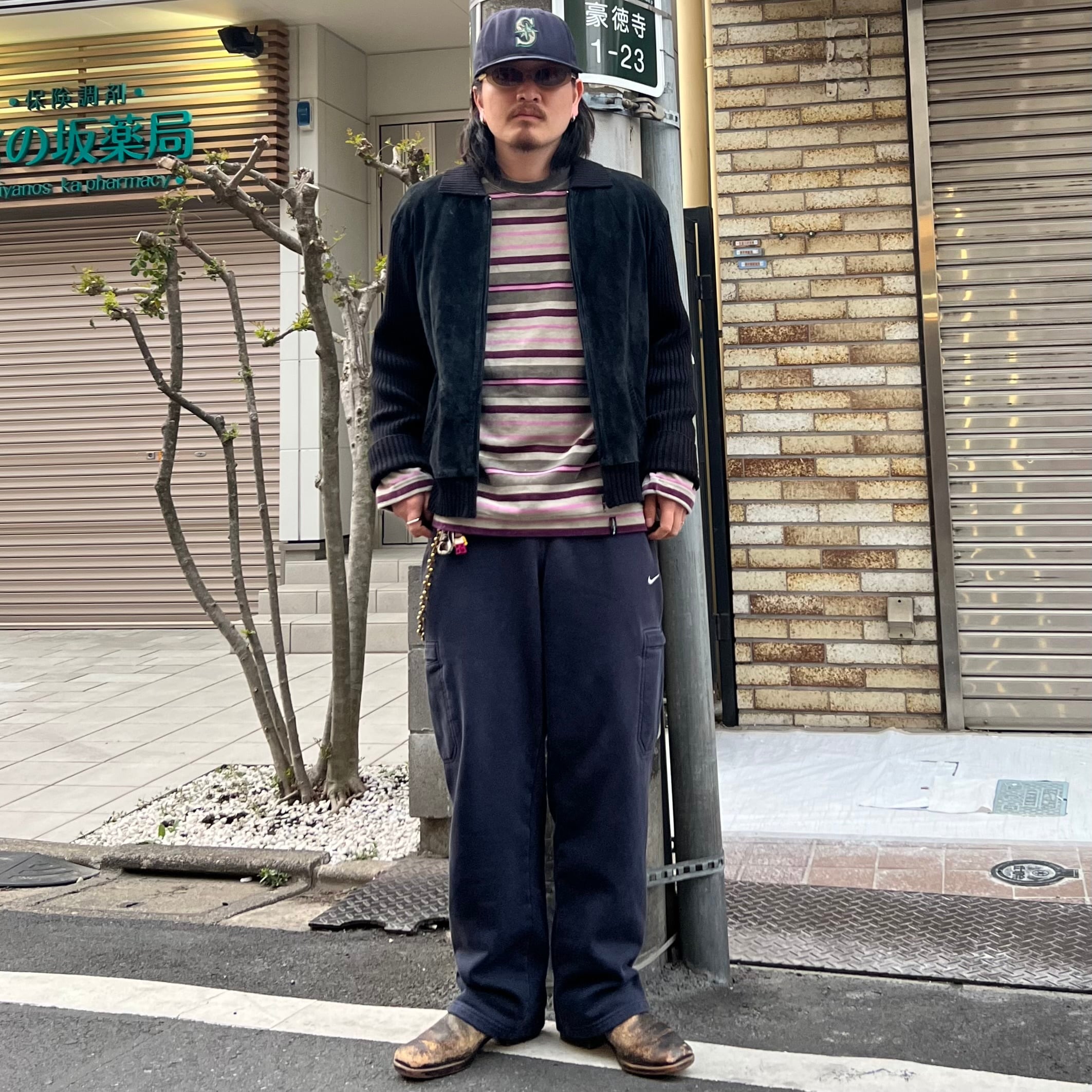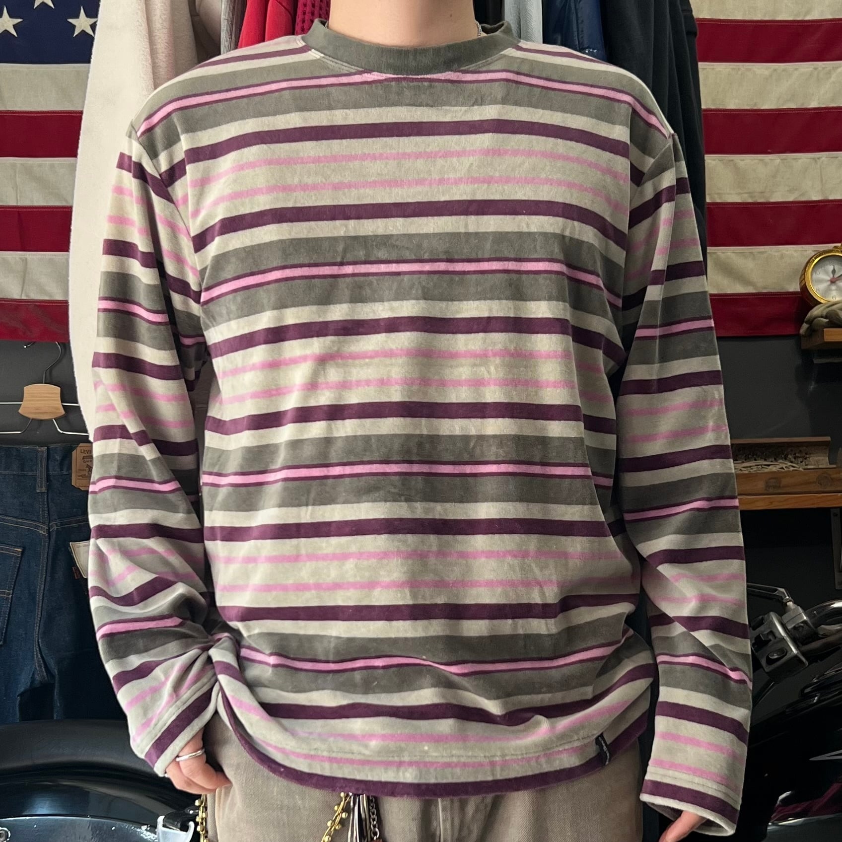 Old Punto Blanco cotton×polyester velour stripe pullover M