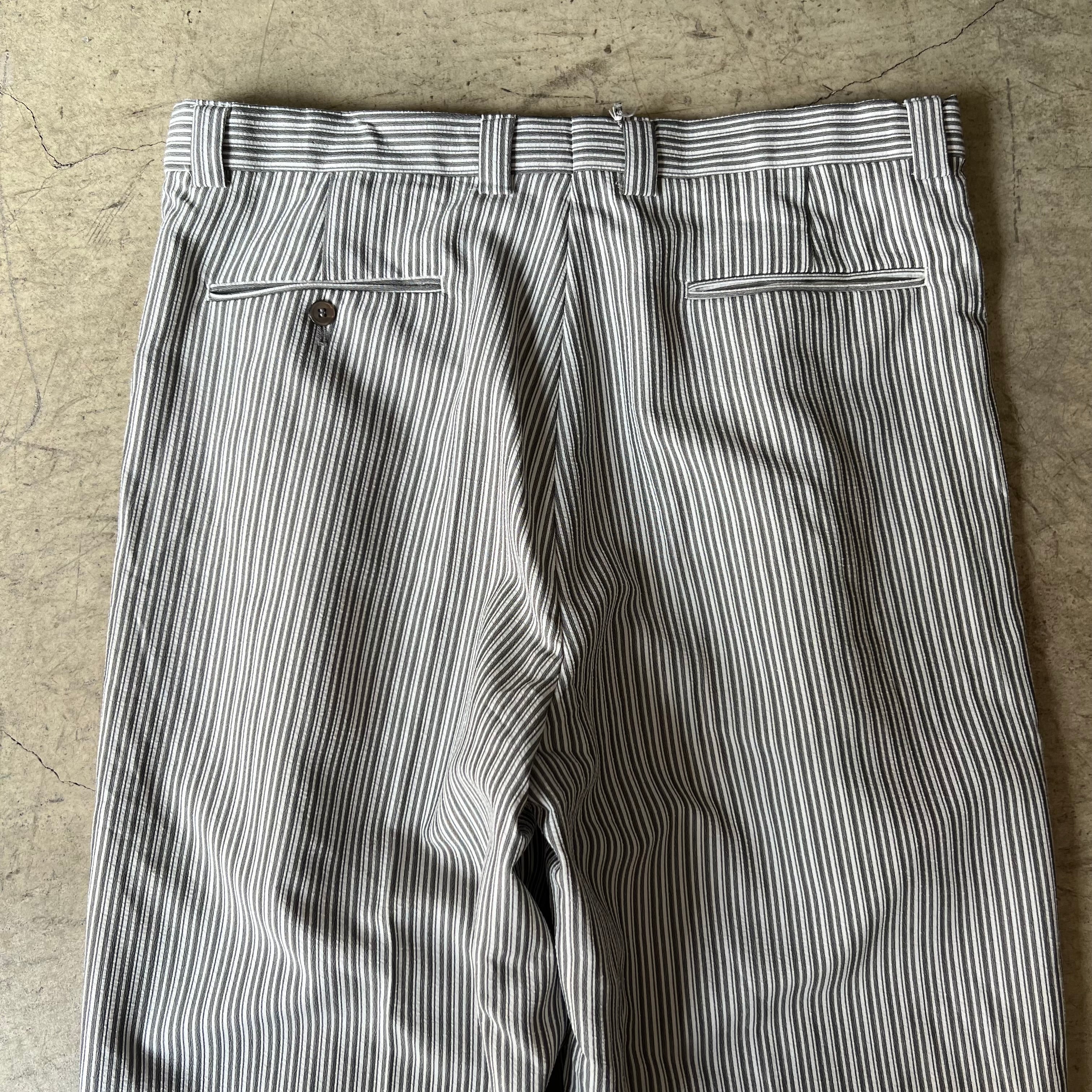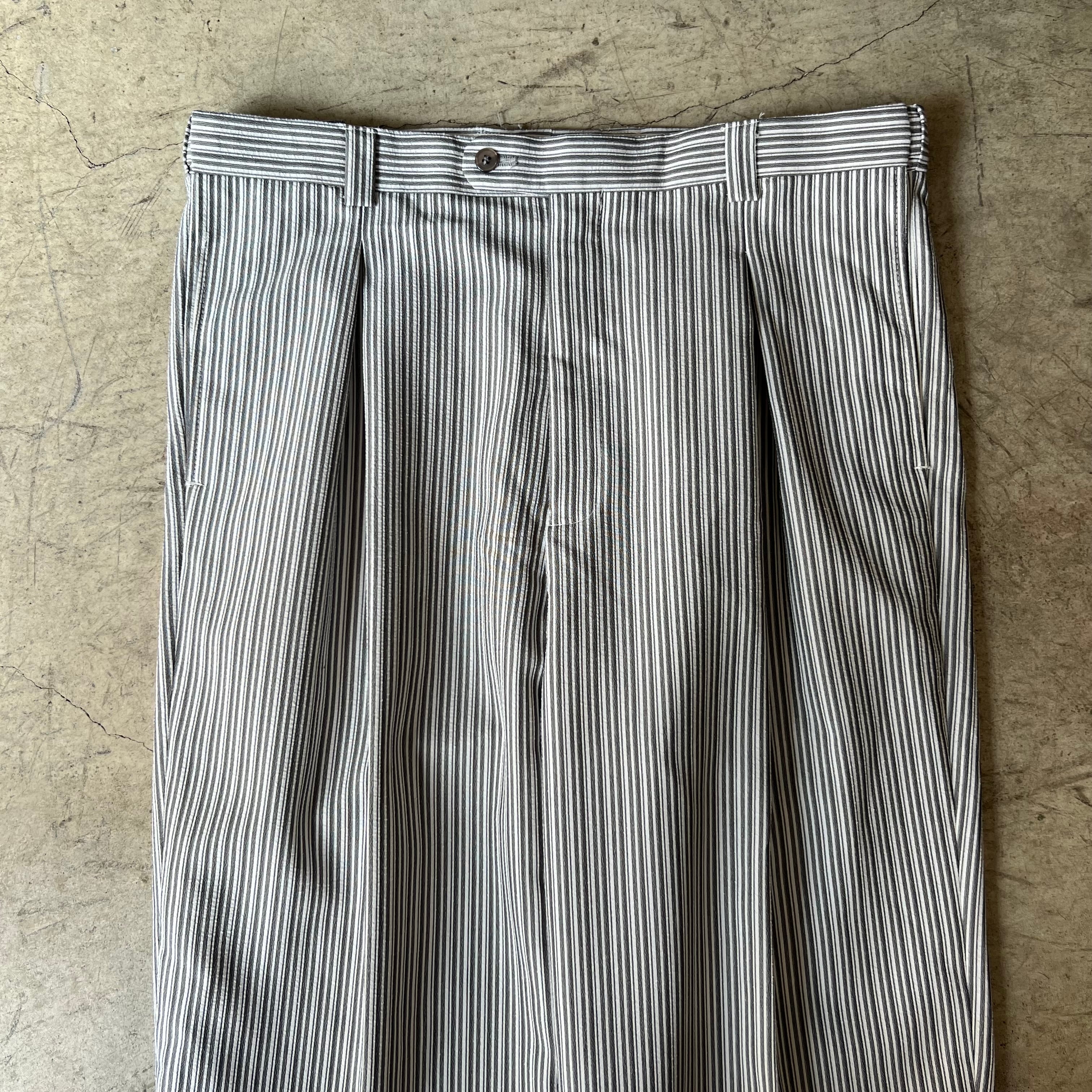 Old Falcone rayon×polyester stripe wide slacks W38L32
