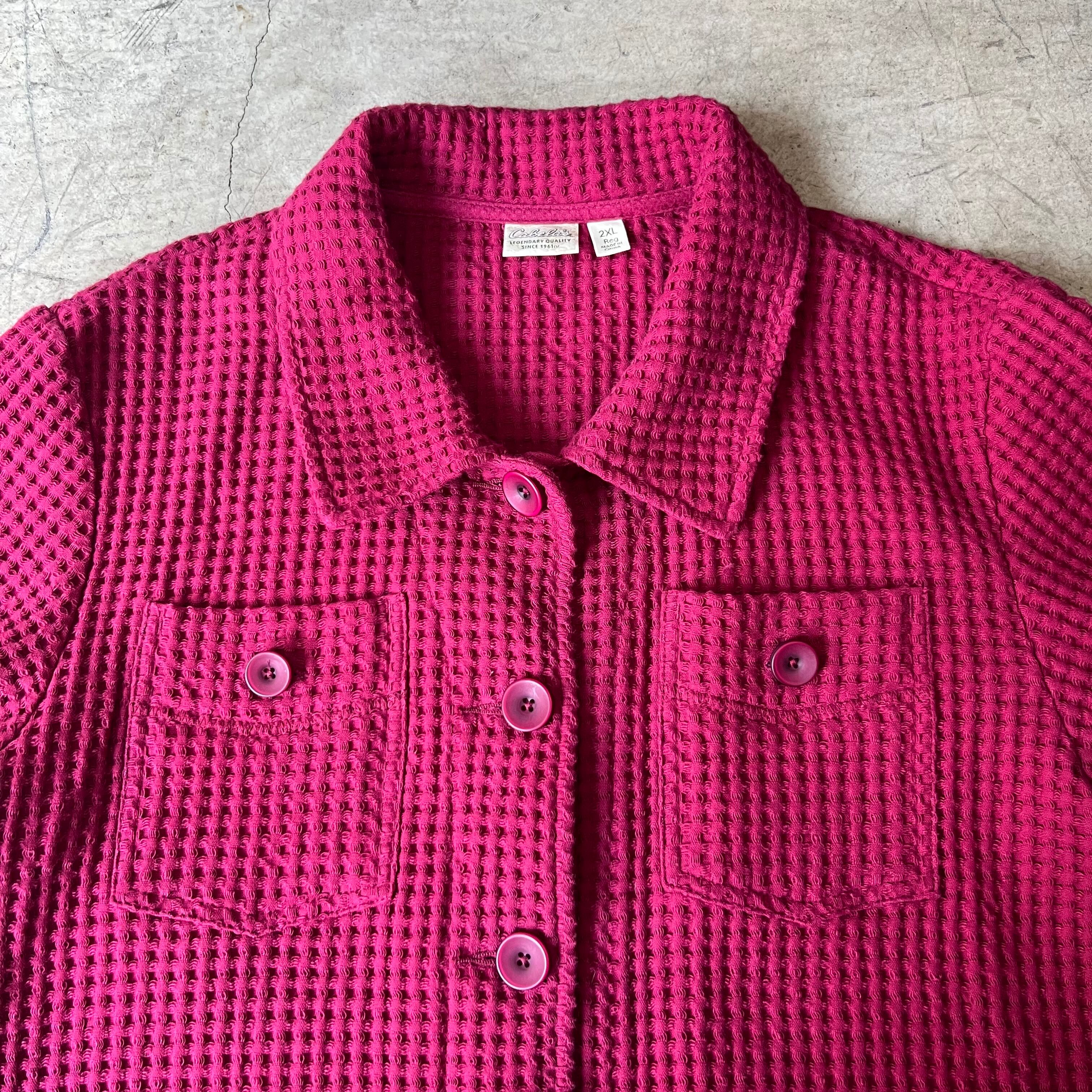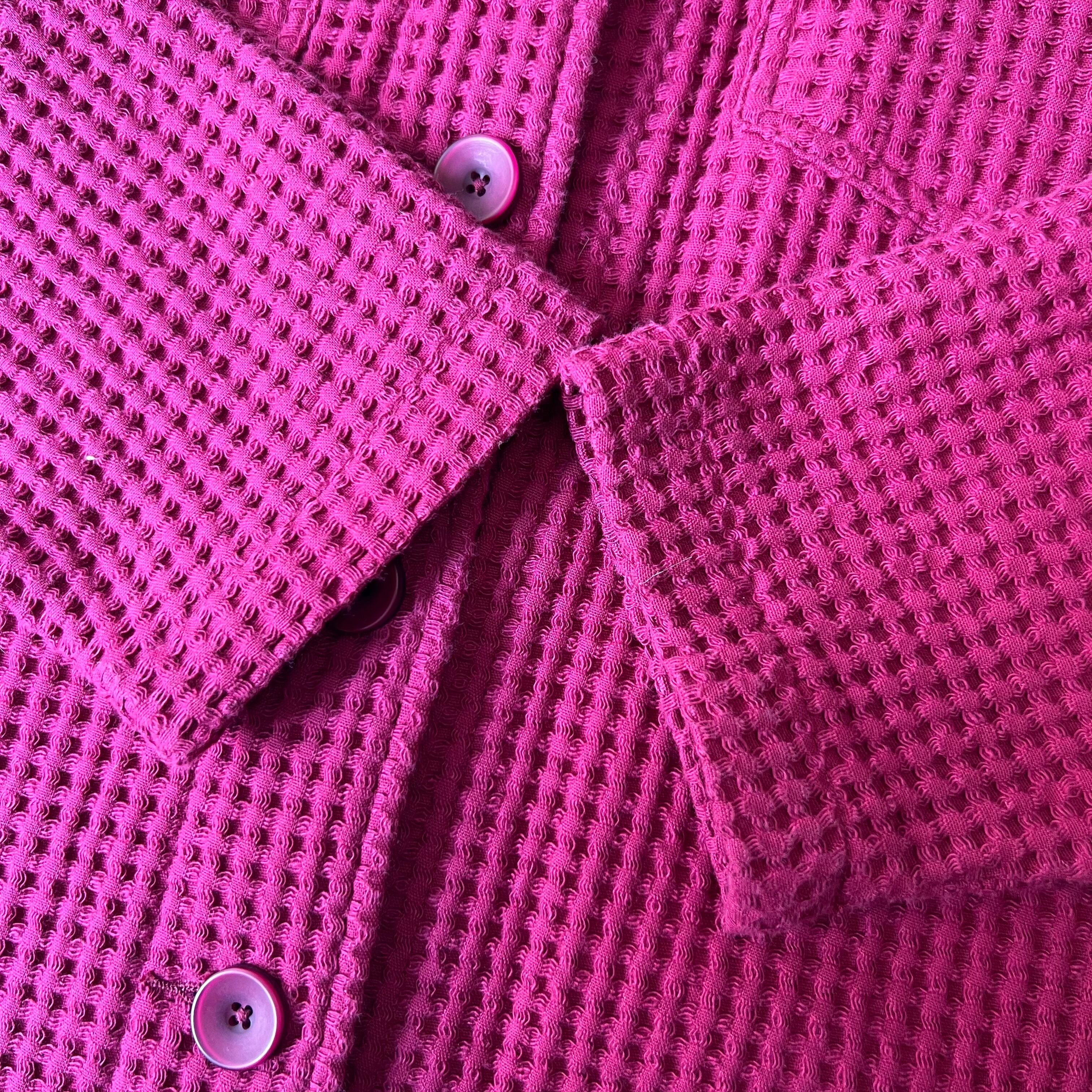 暗めなピンクの凹凸が特徴的なワッフル生地。