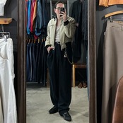 この年代らしい、身幅は広く着丈は短丈なボックスシルエット。