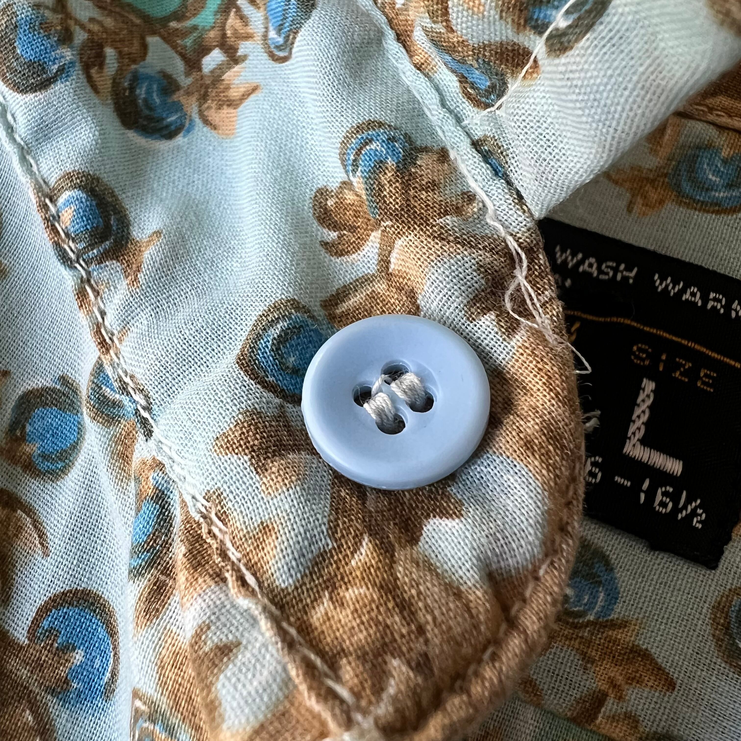 この年代らしいアイロン不要なコットンとポリエステルの柔らかな生地感の1着。