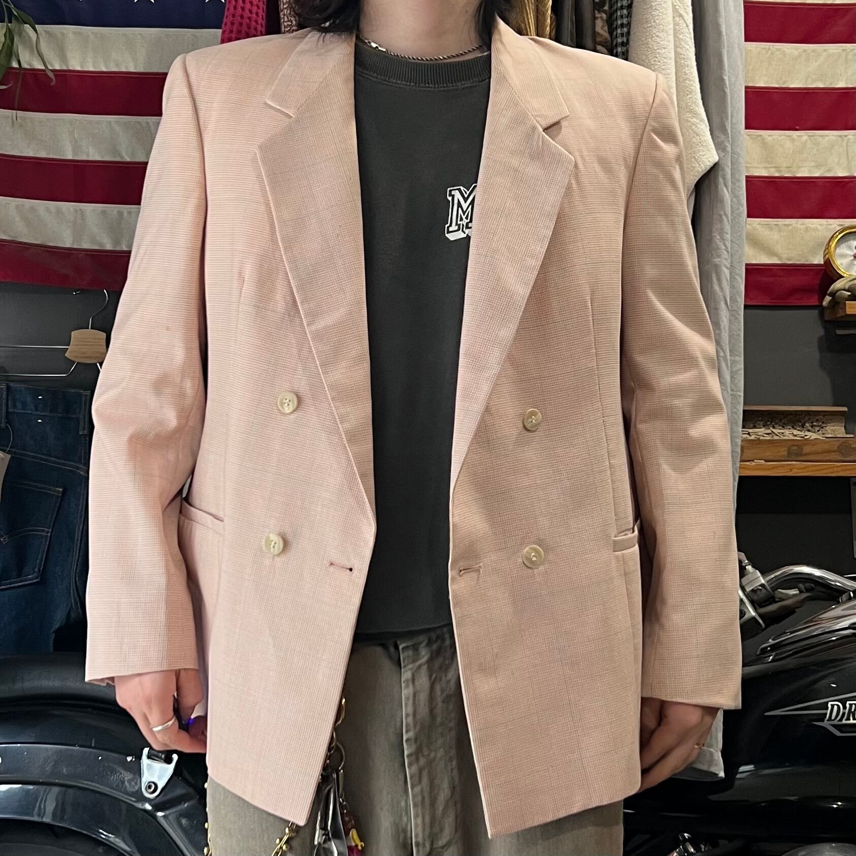 80s CORPORATE WOMAN pure new wool check tailored jacket