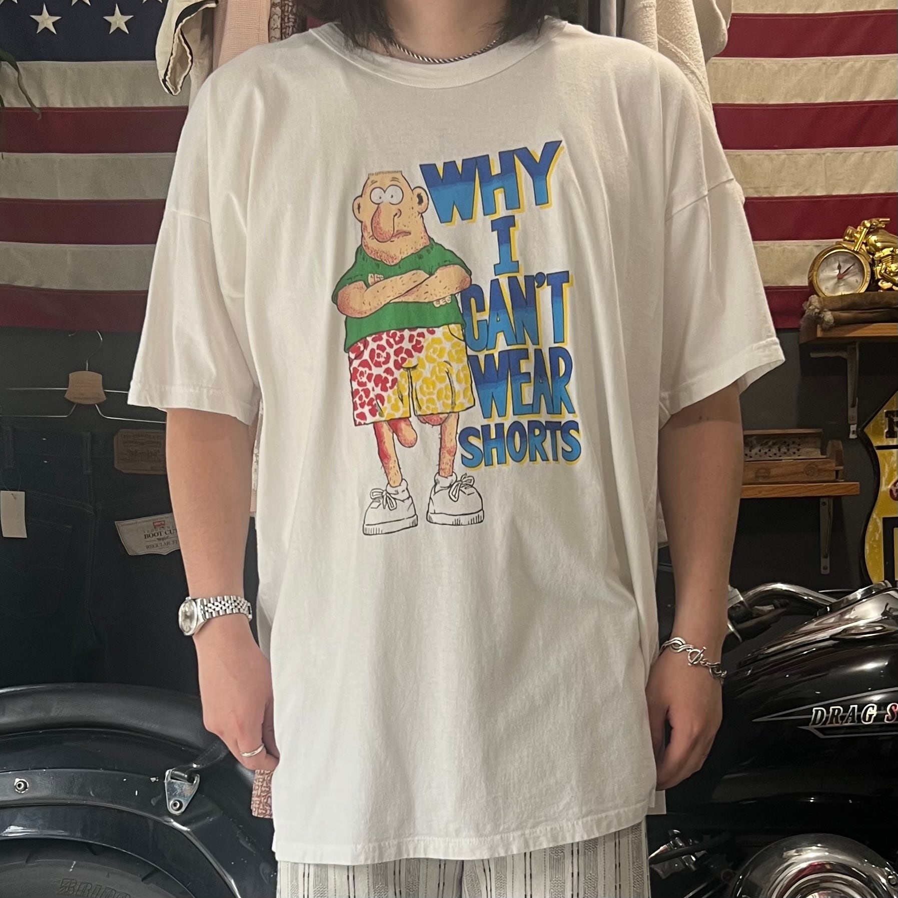 90s WHY I CAN'T WEAR SHORTS cotton T-shirt XL