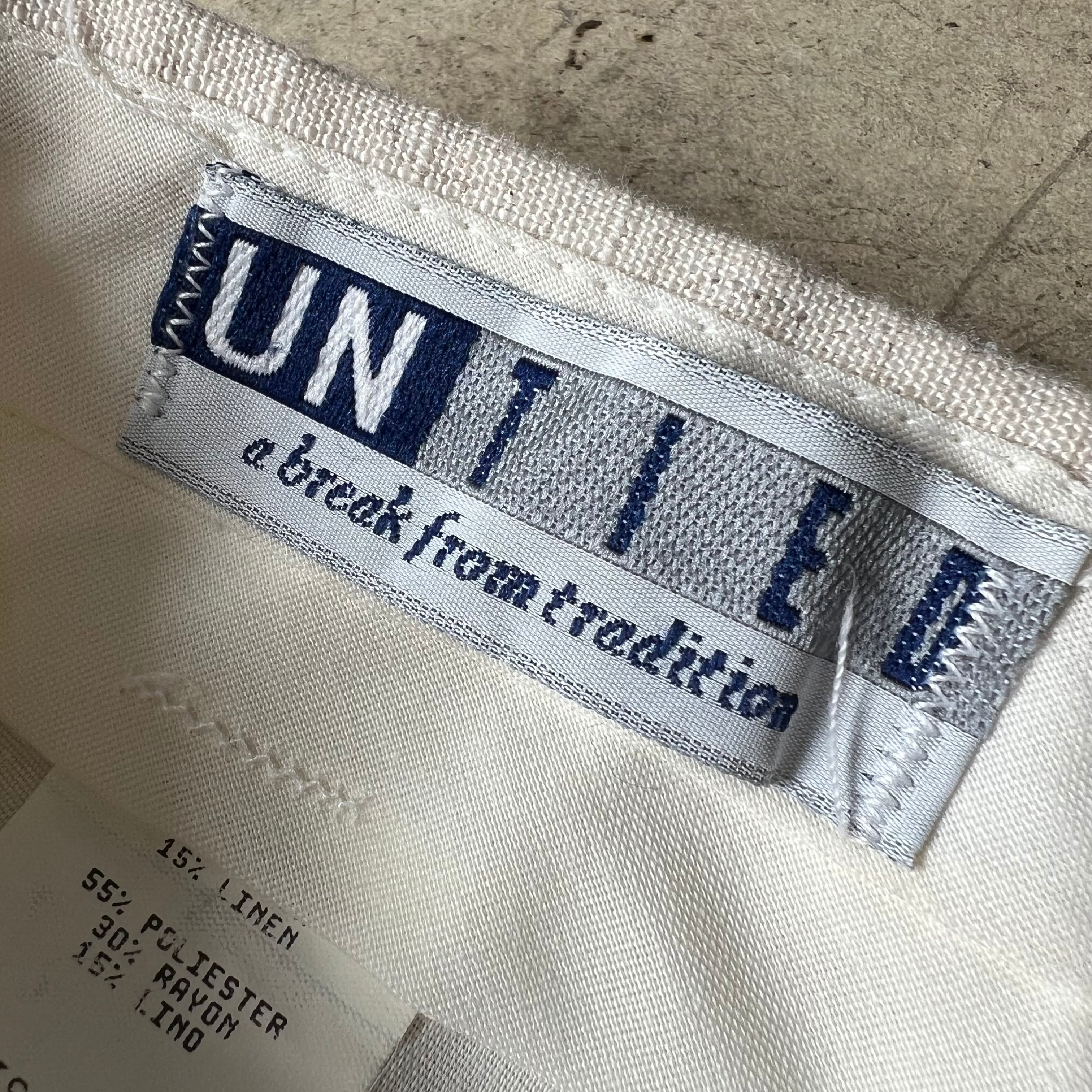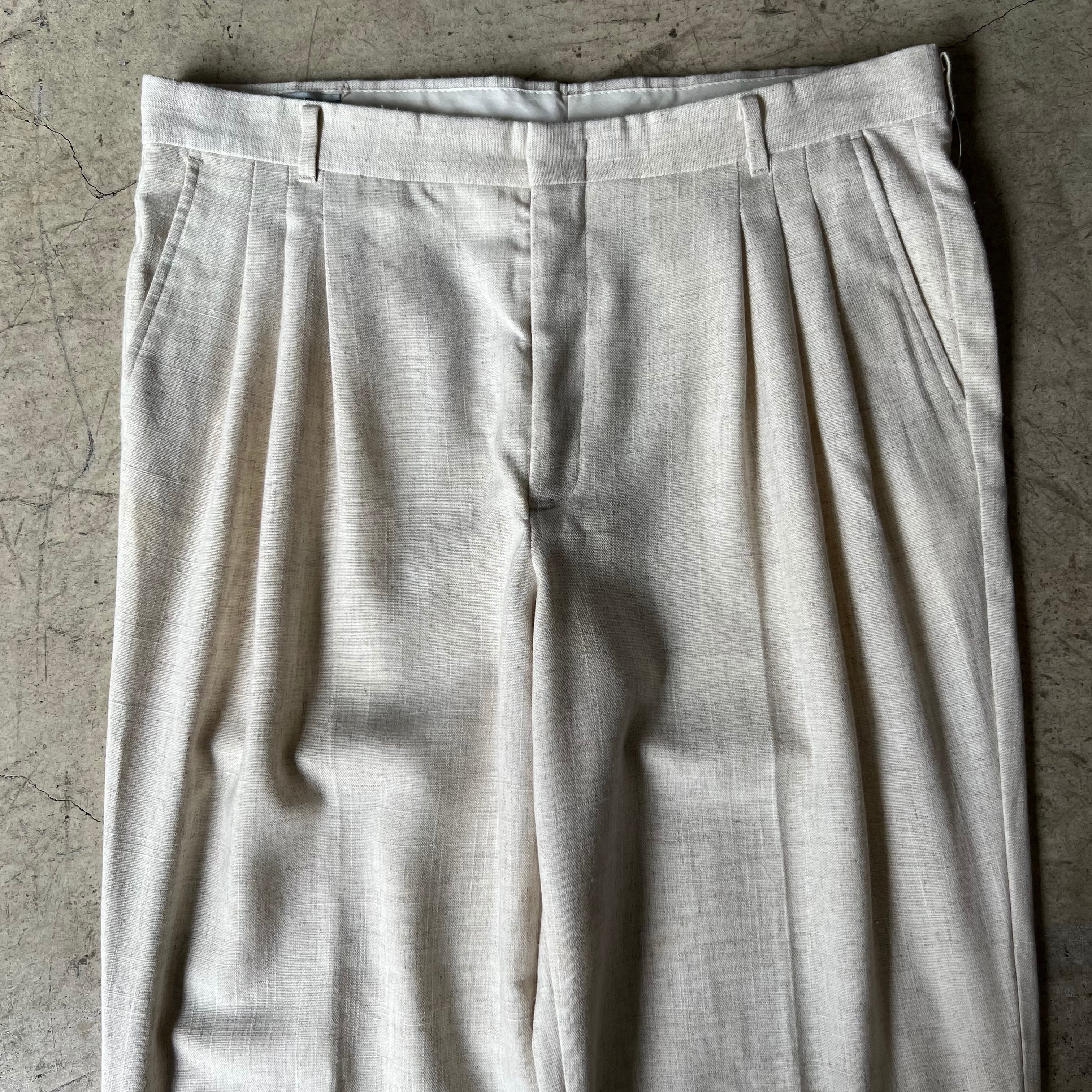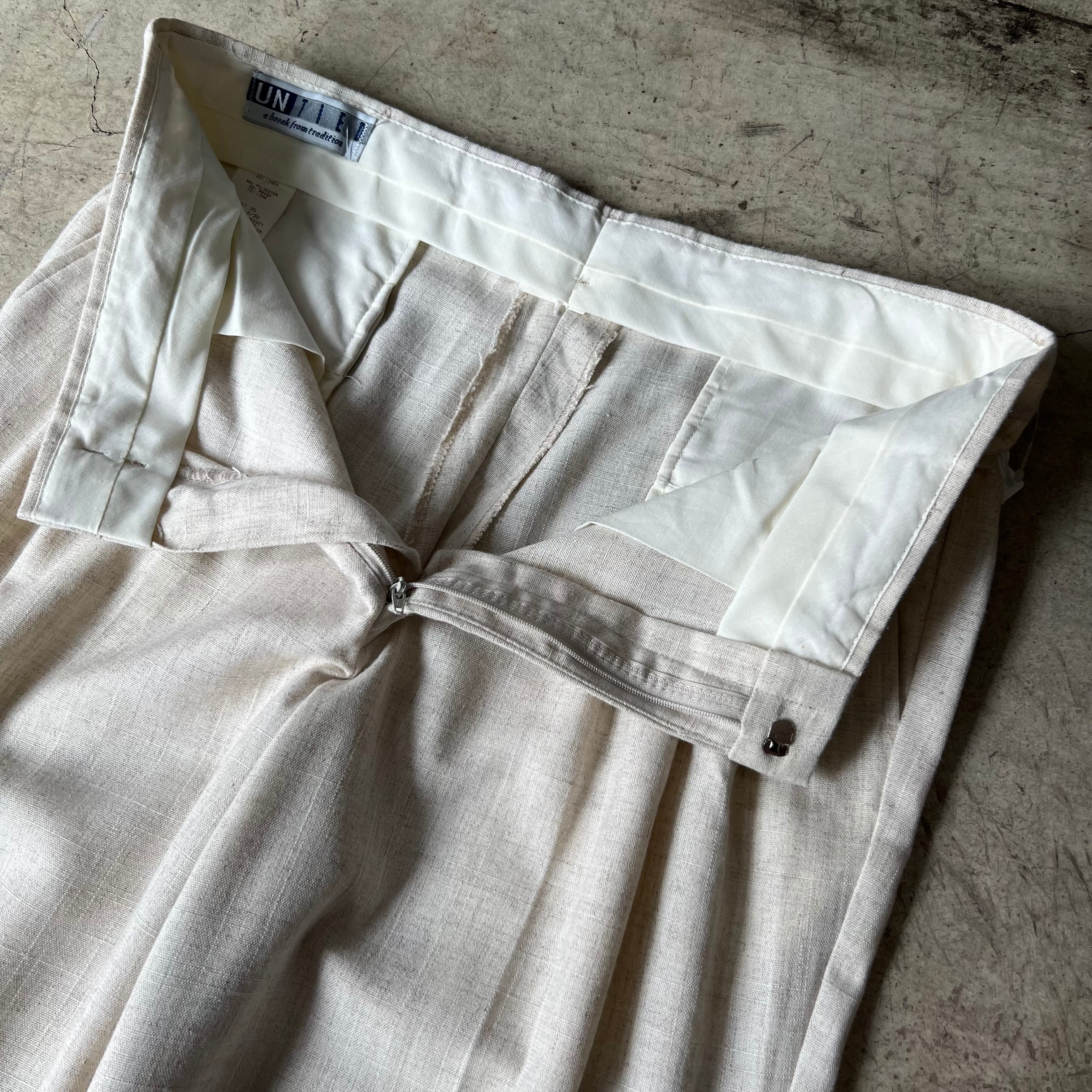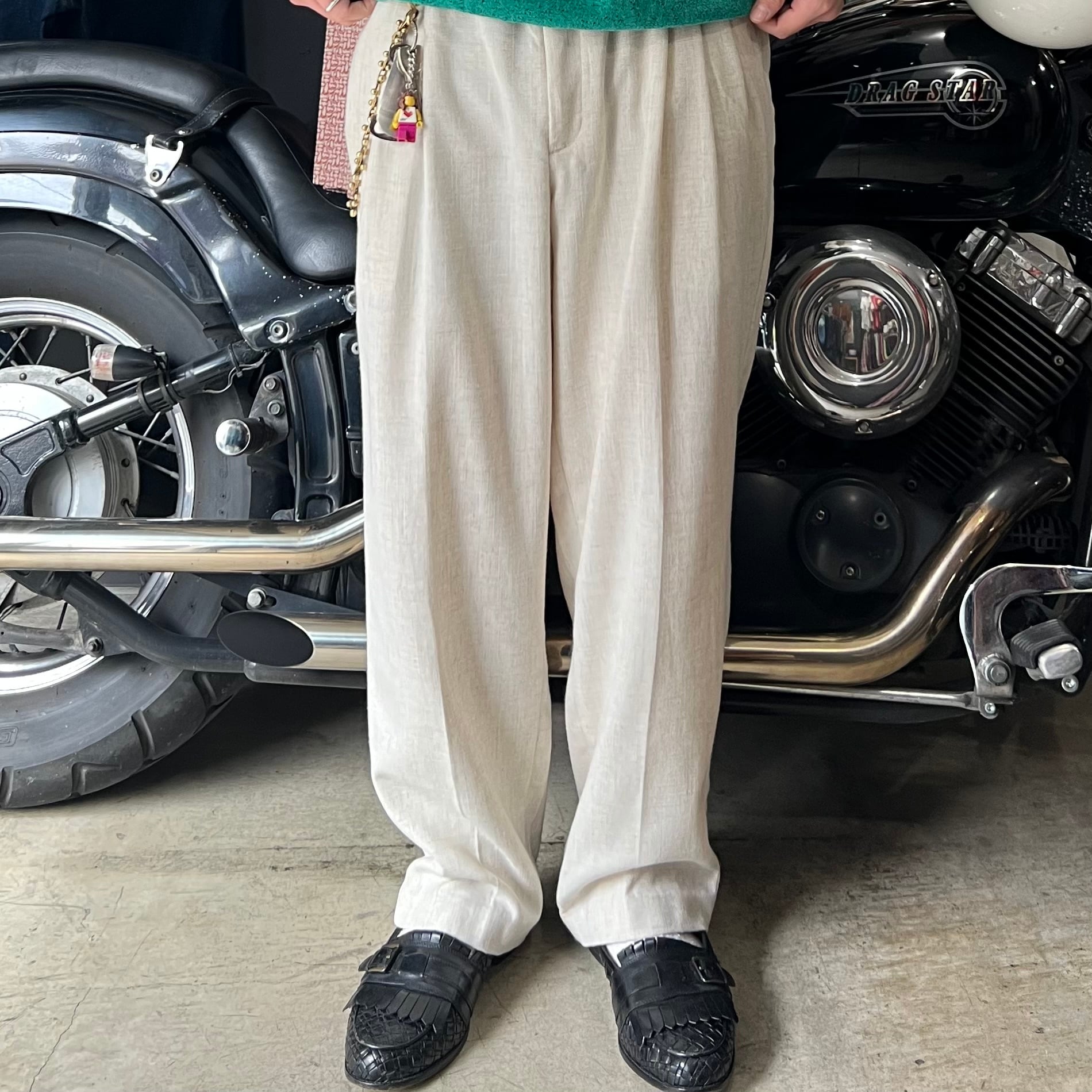 Old UNTIED rayon×linen×polyester “Kasuri” wide slacks W36L30