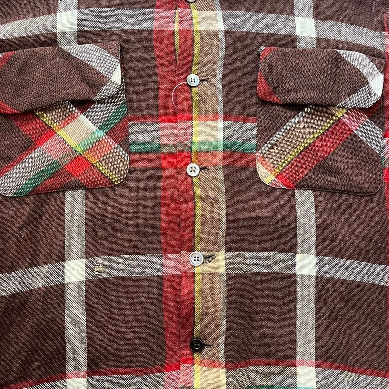 ブラウン主体のカラーリングでホワイトやグリーンがいい差し色になっています。ポケットの柄をあえて揃えていないのでしょうか。それがまた良いデザイン性になっています。裏地やボタンなど一つ一つクオリティが高いシャツです。