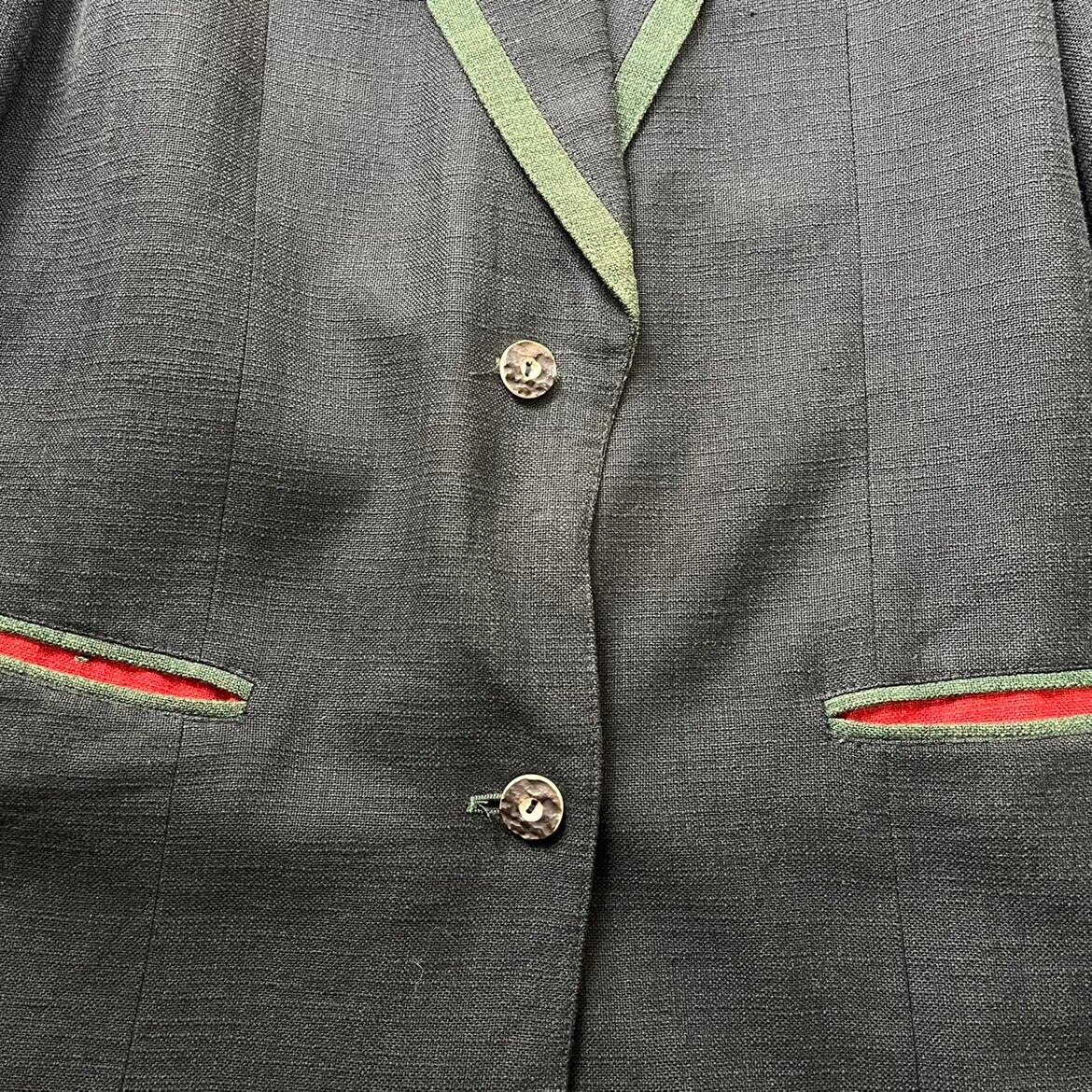 衿や袖口、ポケット等の縁をブレードやテープトリミングで飾ったデザインが特徴で、チロリアンジャケットならではのディテールが沢山あります。