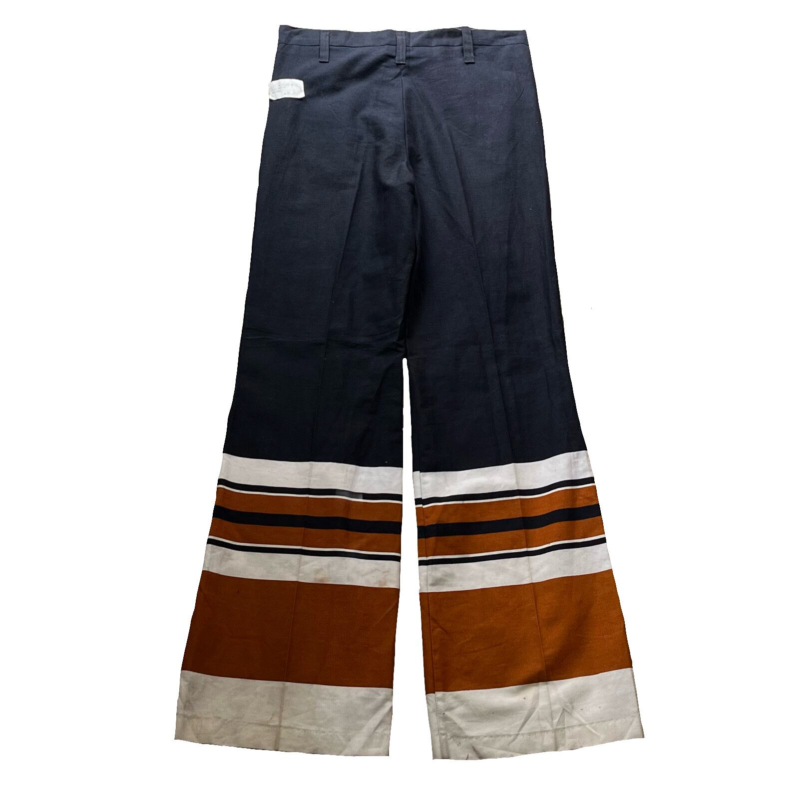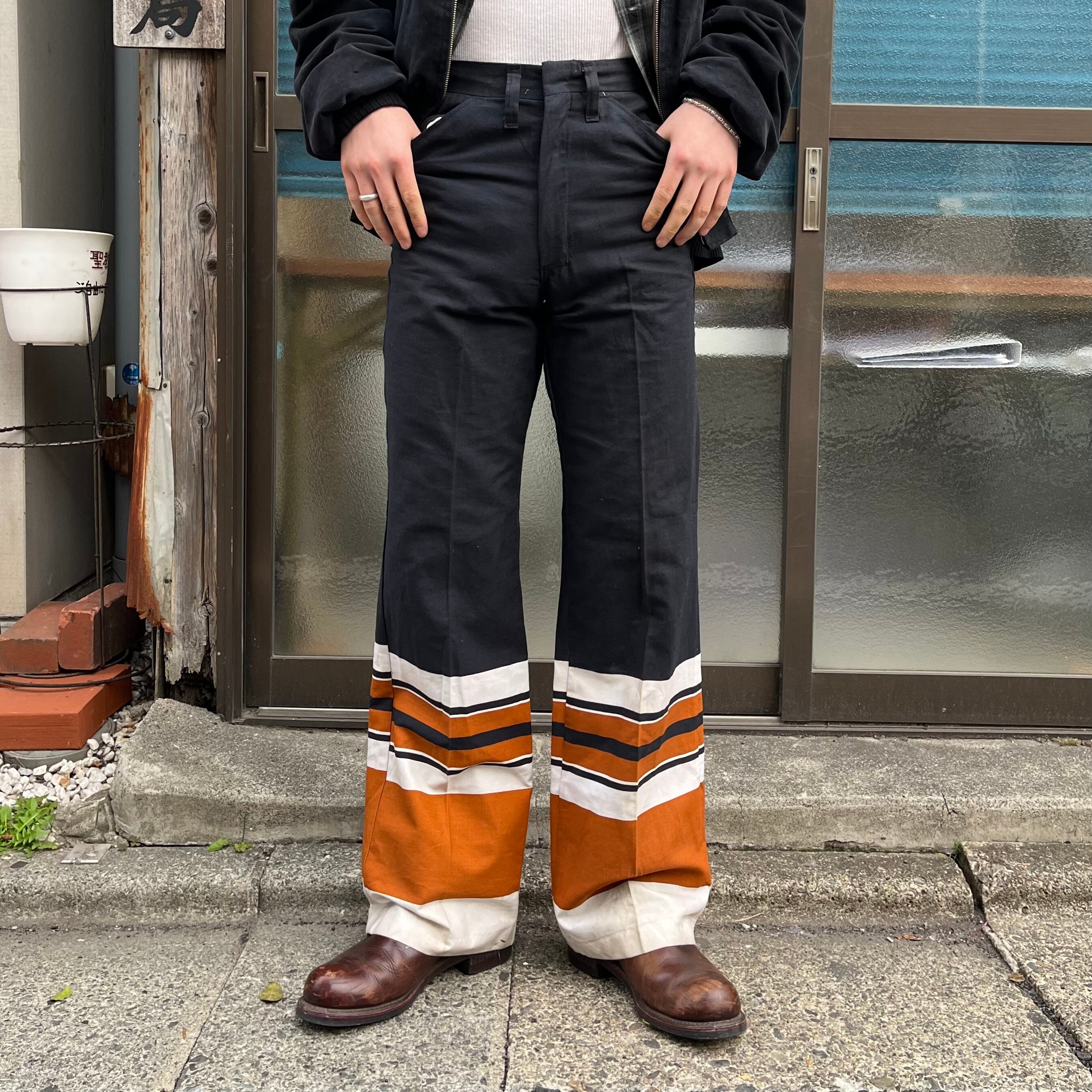 中々珍しいフレアパンツですね。裾にデザインが施されているちょっと珍しいデザインですね。
