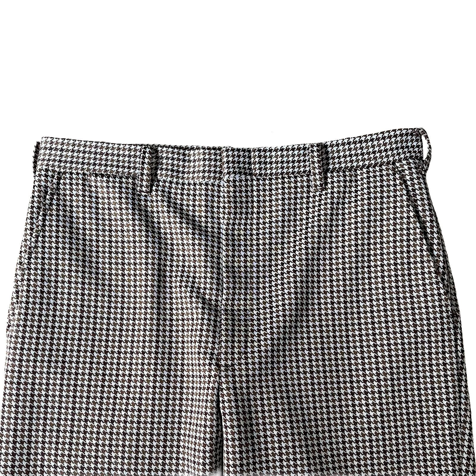千鳥格子柄のポリエステルスラックス。