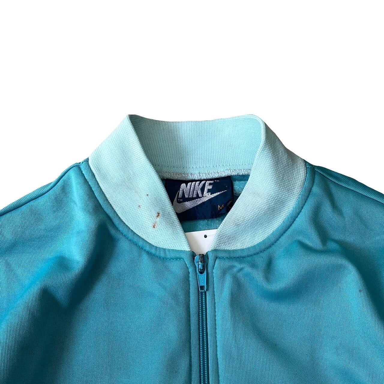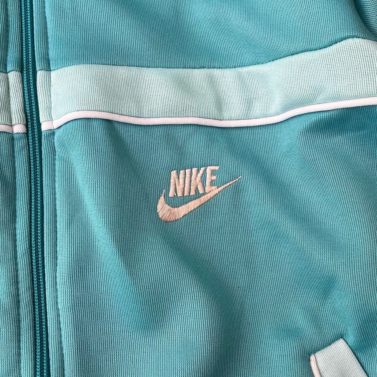 鮮やかなターコイズのトラックジャケット。NIKEの紺タグのアイテムです。