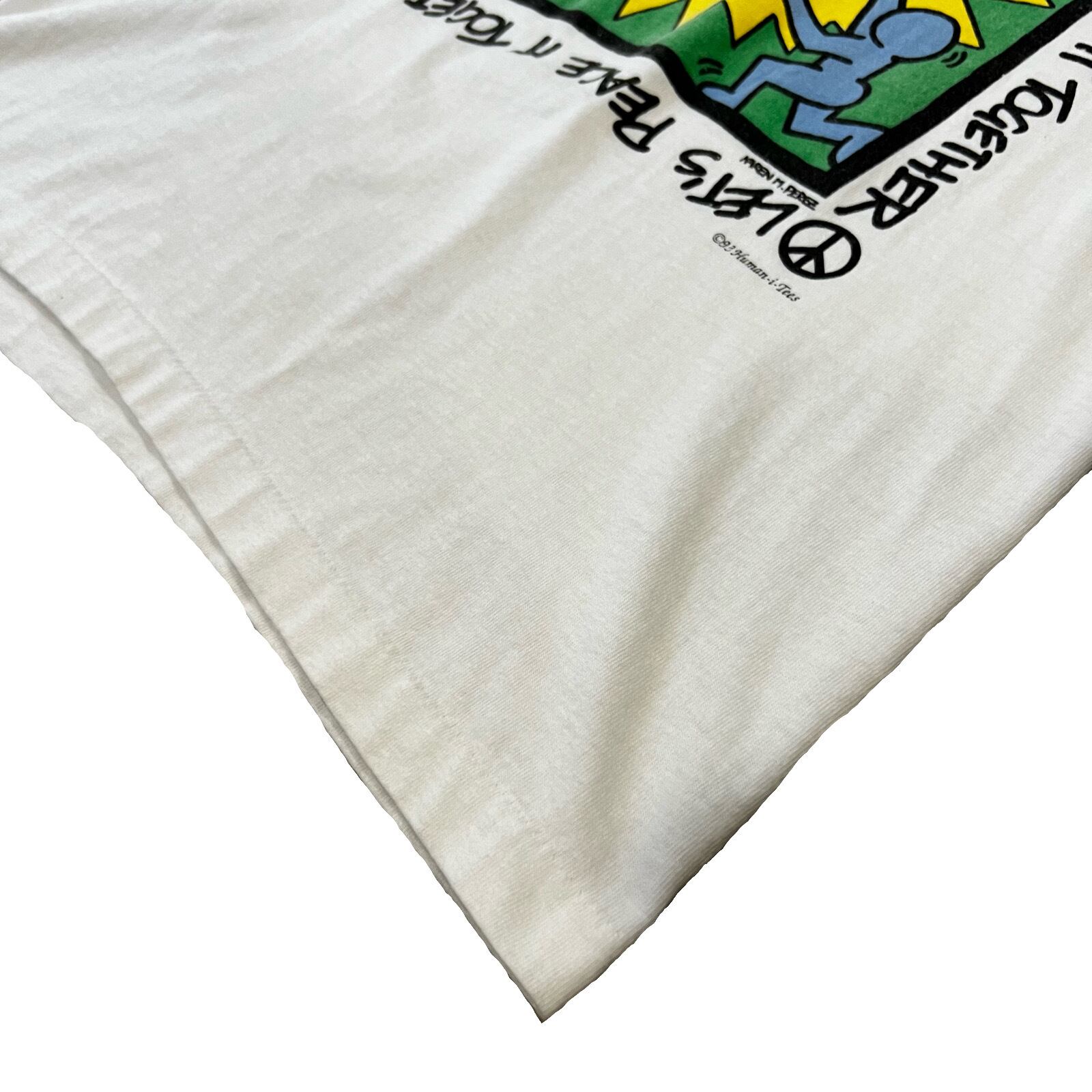 キースヘリングの作品である"Let's Peace It Together"をプリントしたTシャツは数多く作られていますがこちらのダブルネームはレアですね。