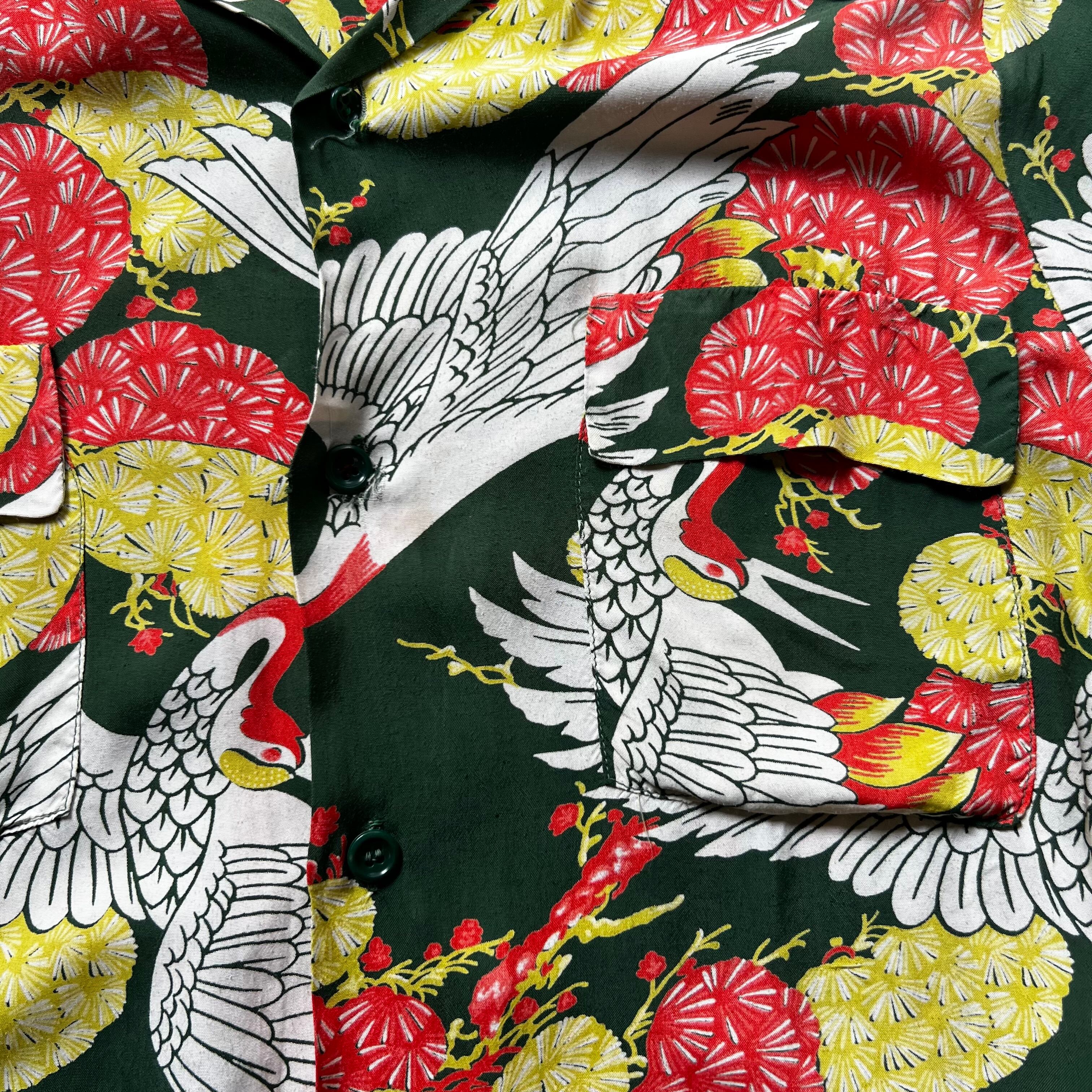 数あるアロハシャツの中でも白鳥がデザインされるこの配色は中々見ないと思います。