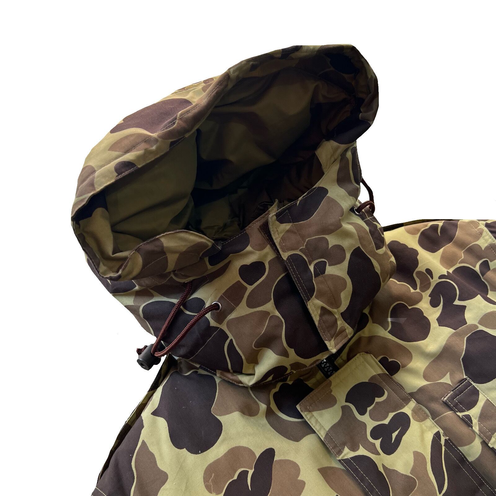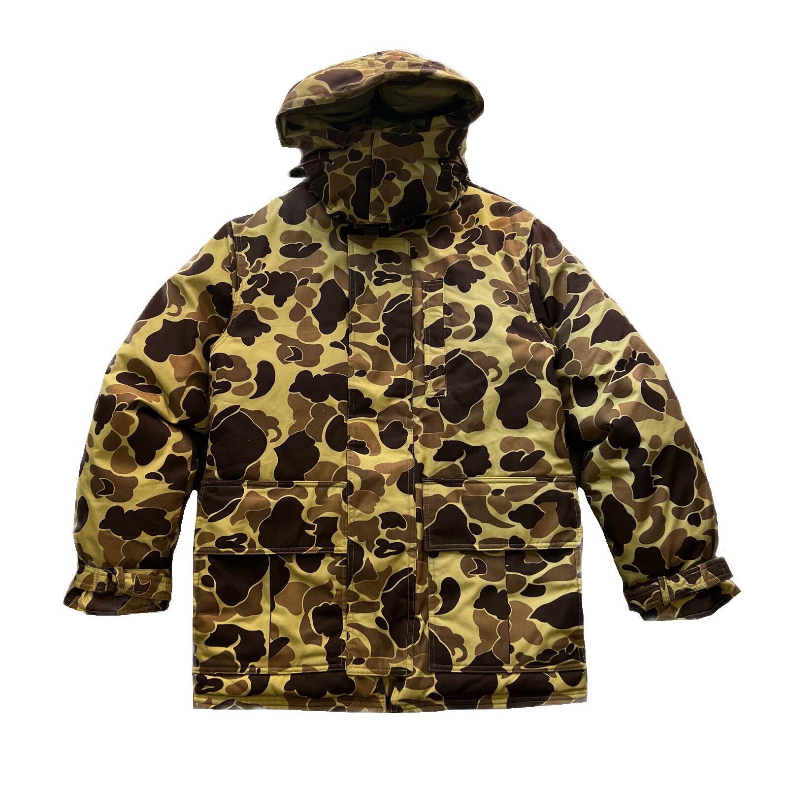カモフラージュ柄の羽毛がパンパンに詰まったダウンジャケットです。