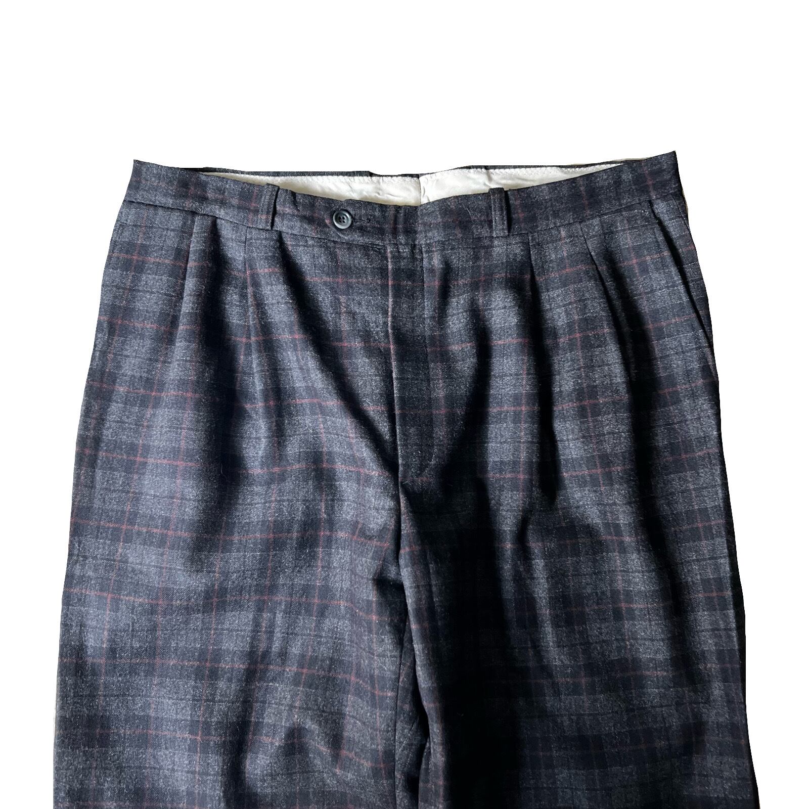 80s Wool check wide slacks