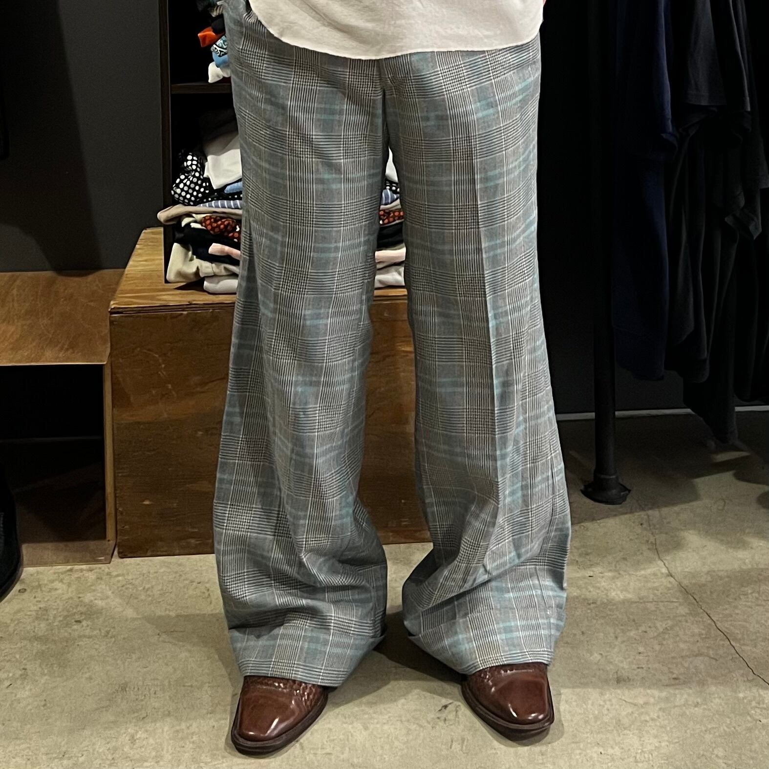 60-70s IMPERIAL wool check wide flare slacks
