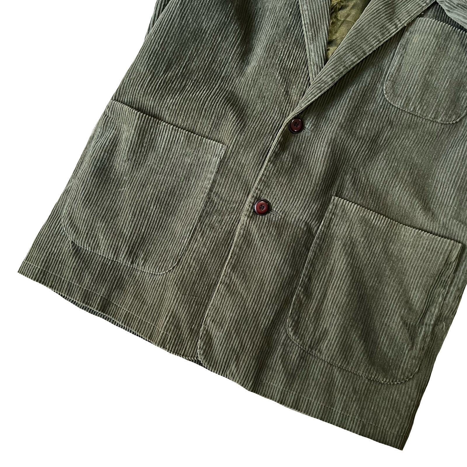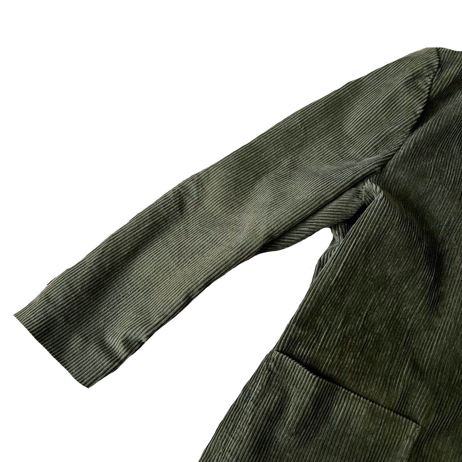 太畝な抹茶色。レザーのエルボーパッチでウッドなボタン。