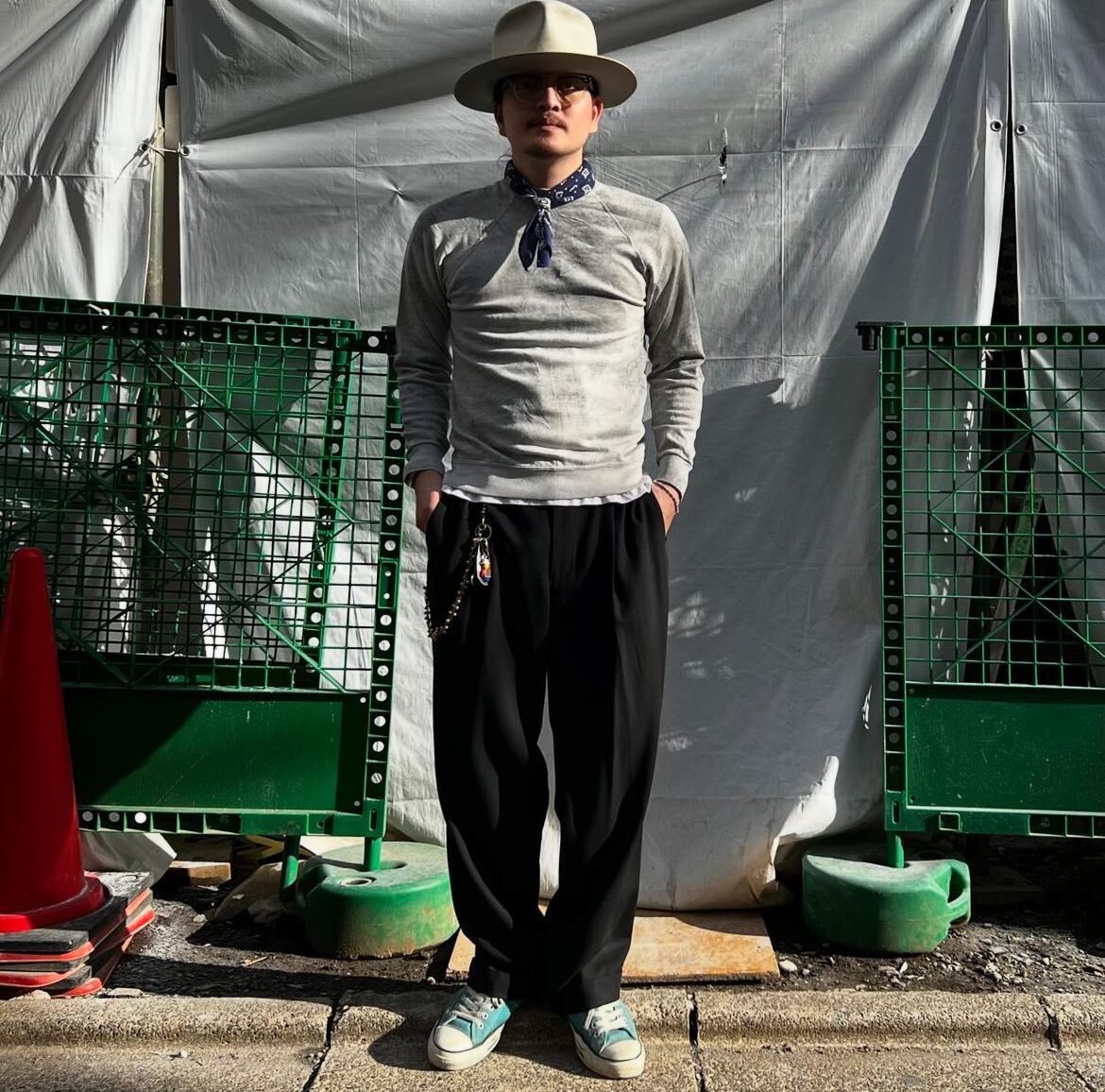 ワイドなスラックス、スカーフとか合わせちゃって下さいな〜