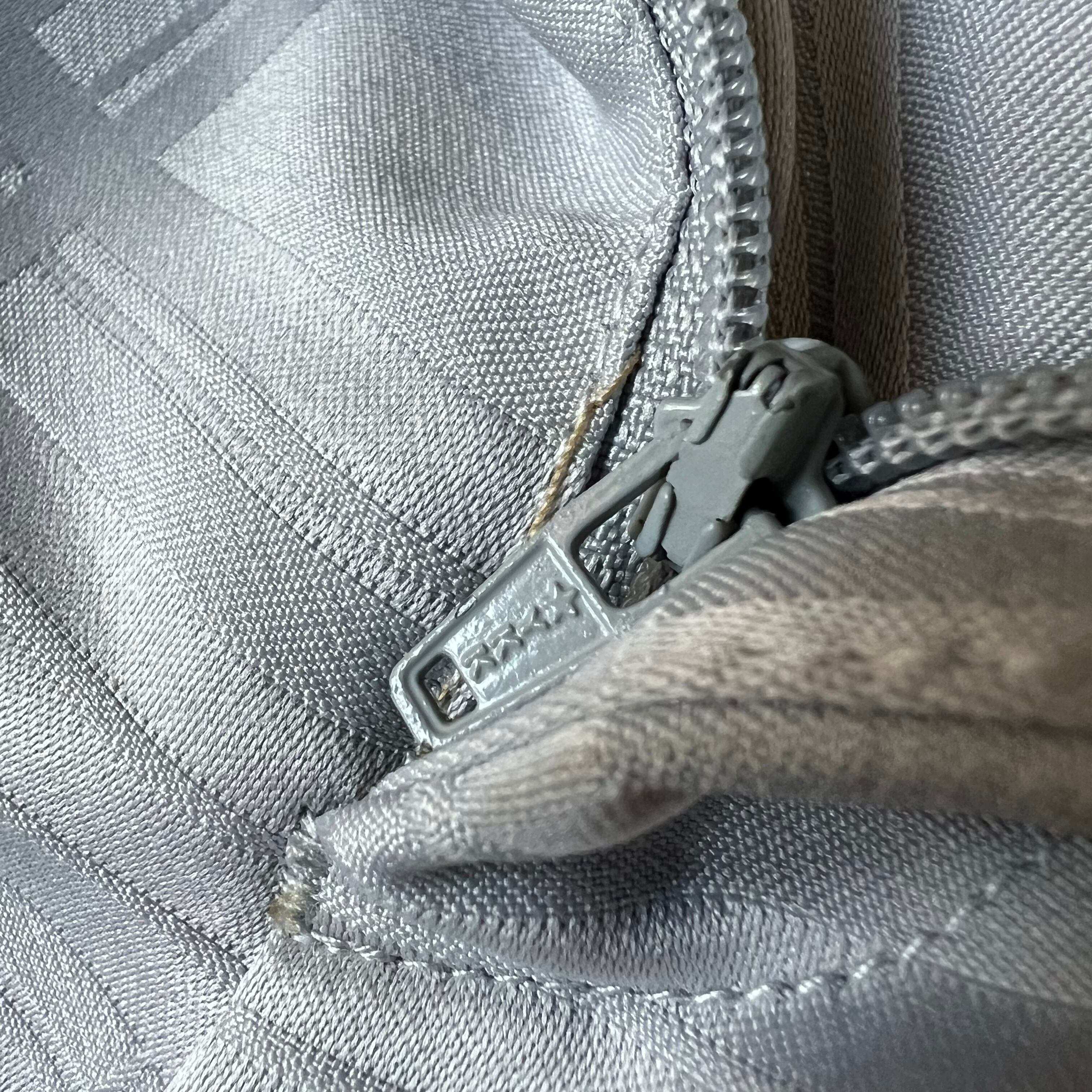 単色のライトグレーのチェックスラックス。
