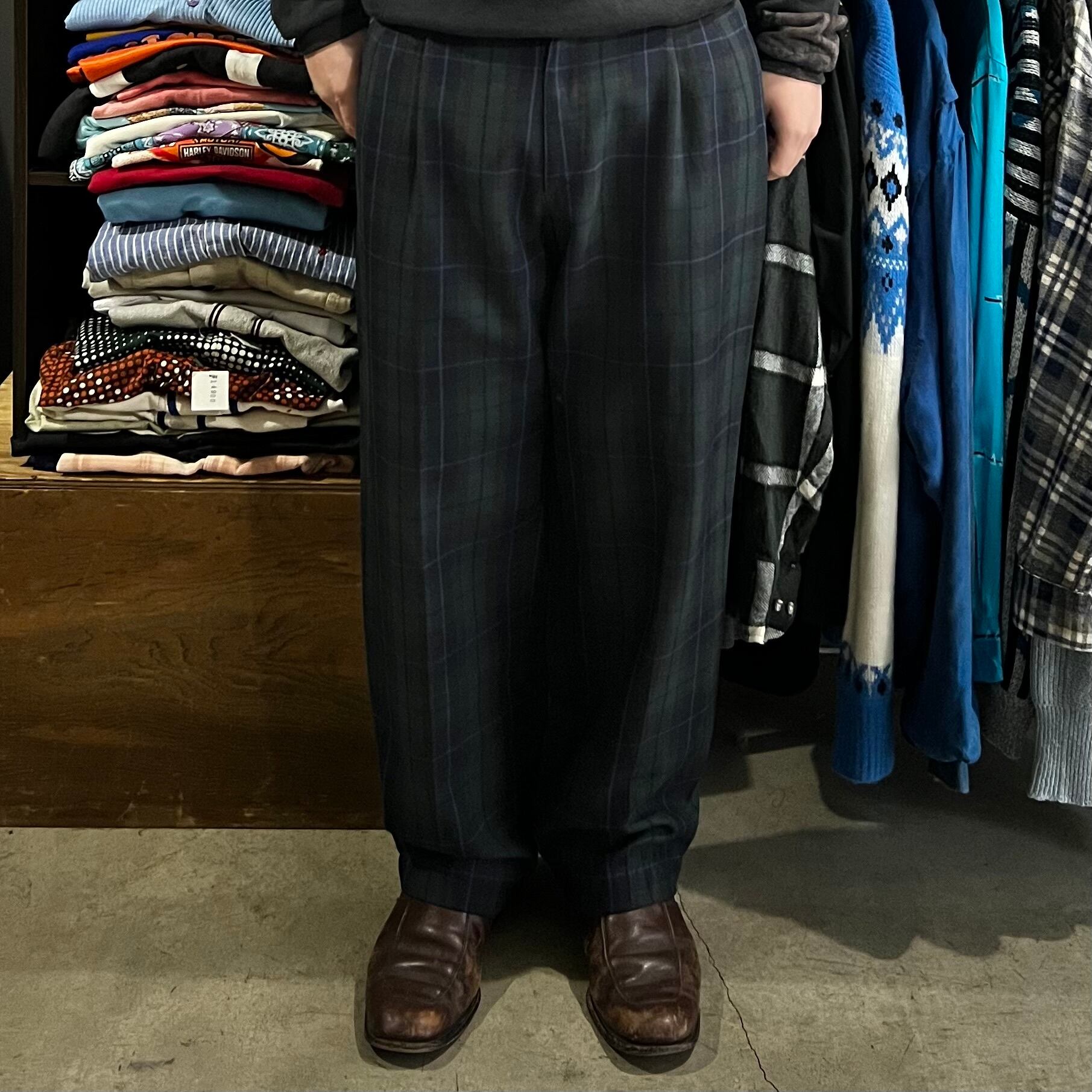 80s Wool×polyester check slacks
