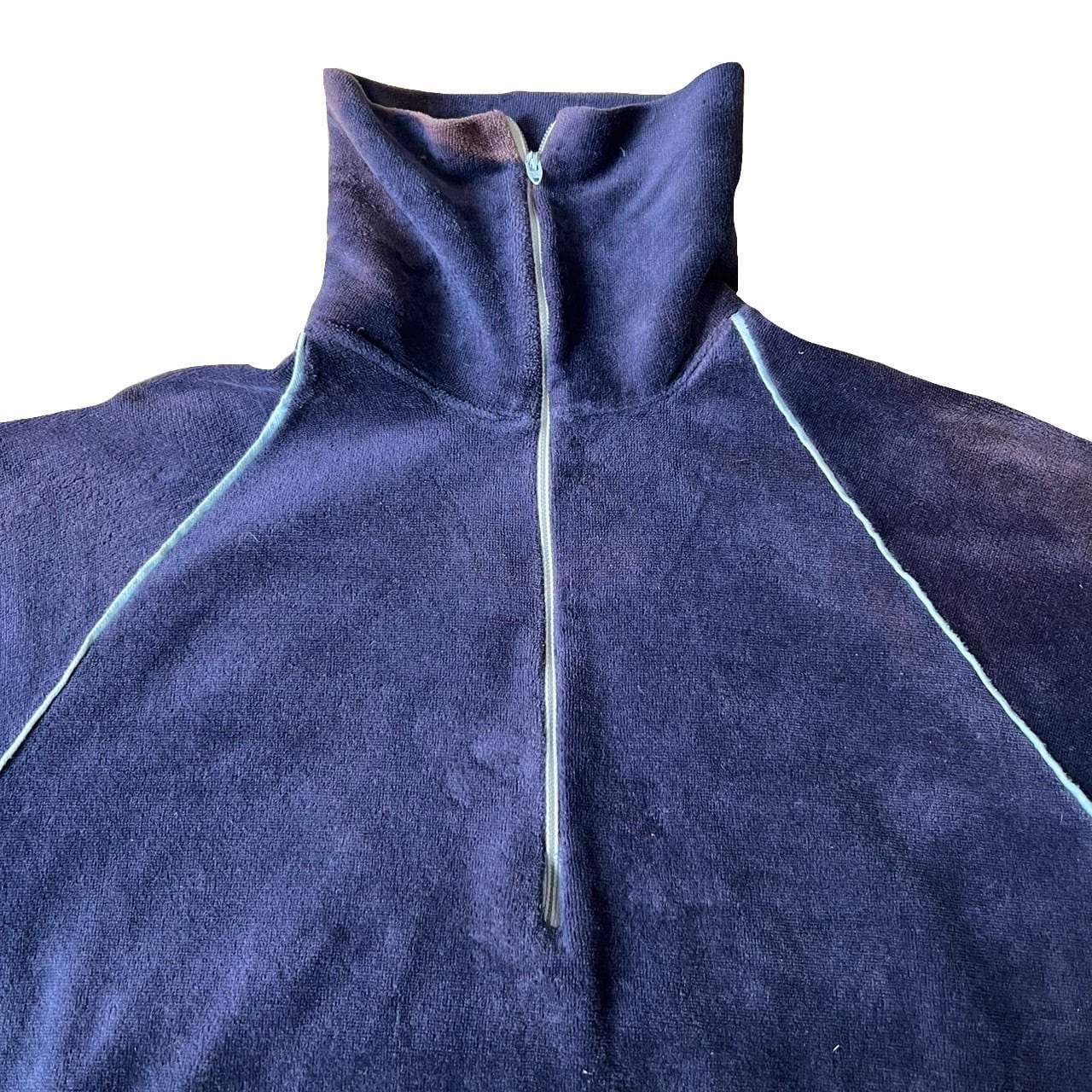 高級感のあるベロア素材で仕立てられたハーフジップ。